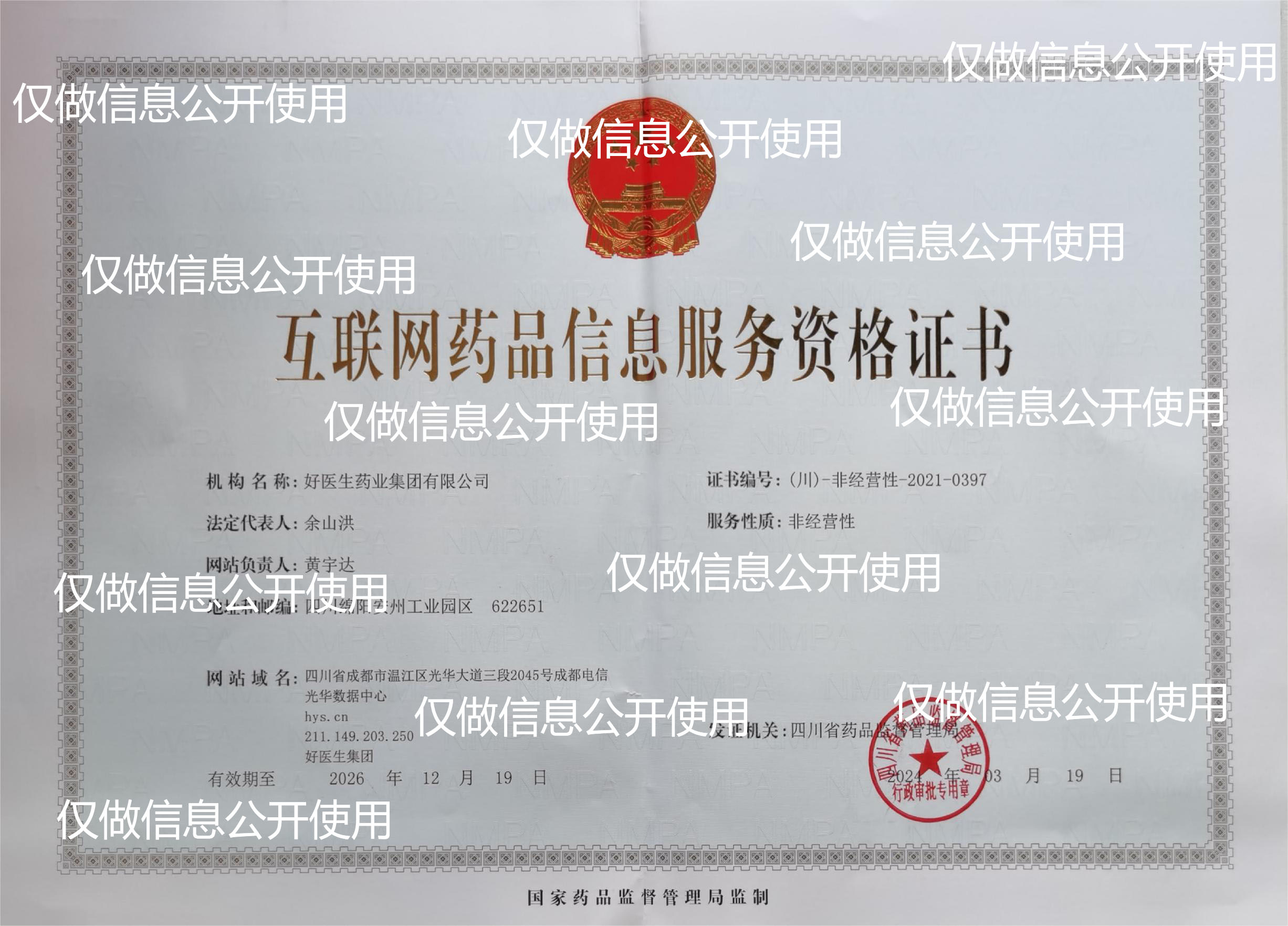 Internet Drug Information Service Qualification Certificate: (Sichuan) - Non operating -2021-0397 Shu ICP Bei No. 06014542-1