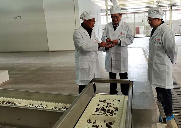 李建華書記一行實地參觀考察了產品展示區、美洲大蠊養殖區、康復新液智能化生產線,聽取了關于企業發展歷程、黨建與生產經營融合成效,以及產品研發、全流程質量管控等情況的匯報,全面了解企業生產檢驗關鍵環節與實際需求。