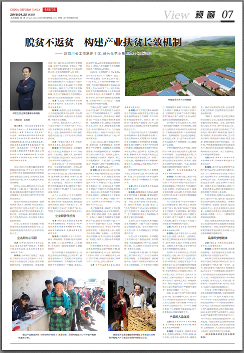 從 1996 年開始,耿福能就帶領企業在涼山布拖縣通過產業扶貧推廣種植中藥材“附子”。通過發揮企業優勢,以科技創新為引擎,在布拖大力發展特色中藥材種植產業,形成了全產業鏈模式,帶領當地群眾走出一條農業產業化、規模化、現代化、機械化、標準化、品牌化的鄉村振興新路子。