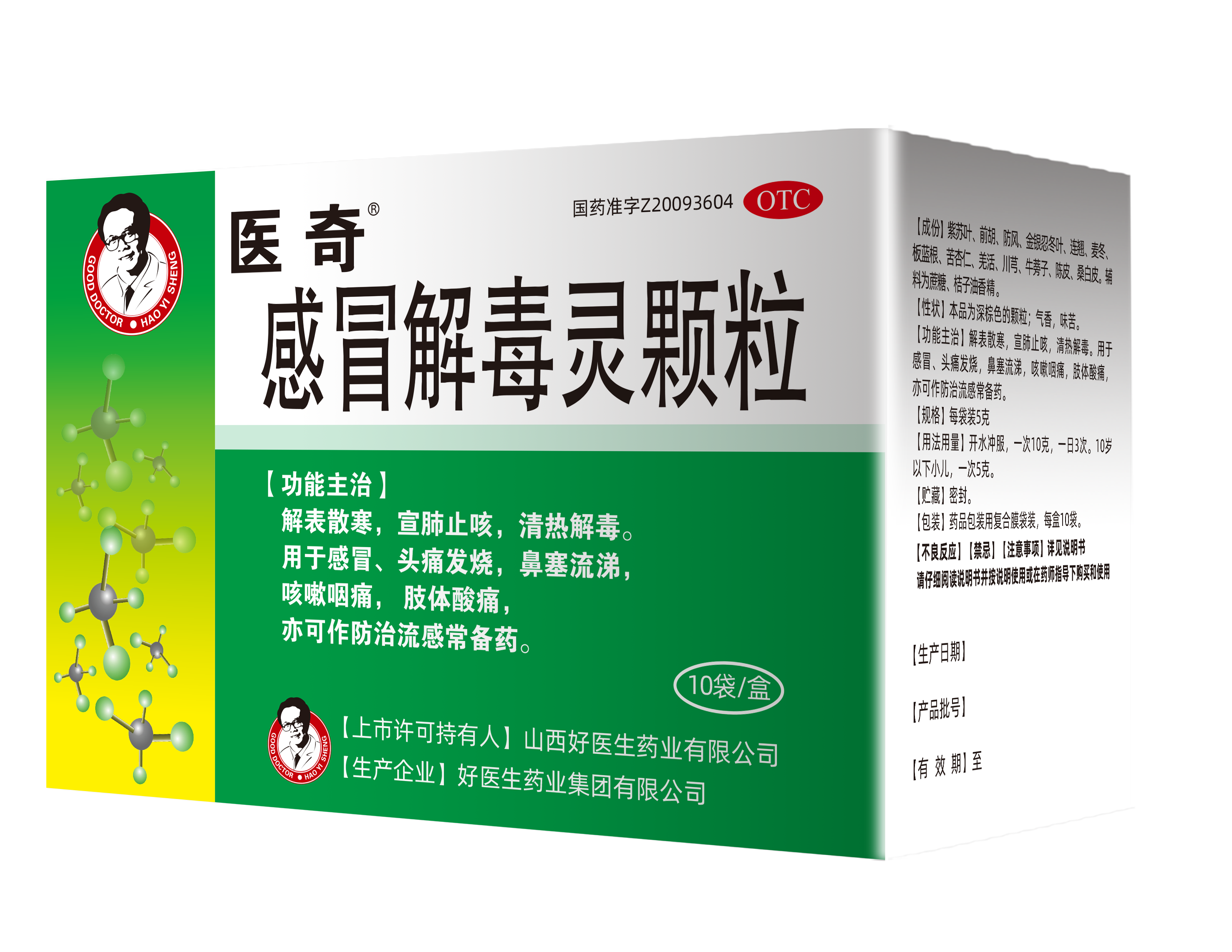 解表散寒,宣肺止咳,清熱解毒。用于感冒、頭痛發(fā)燒,鼻塞流涕,咳嗽咽痛,肢體酸痛,亦可作防治流感常備藥。